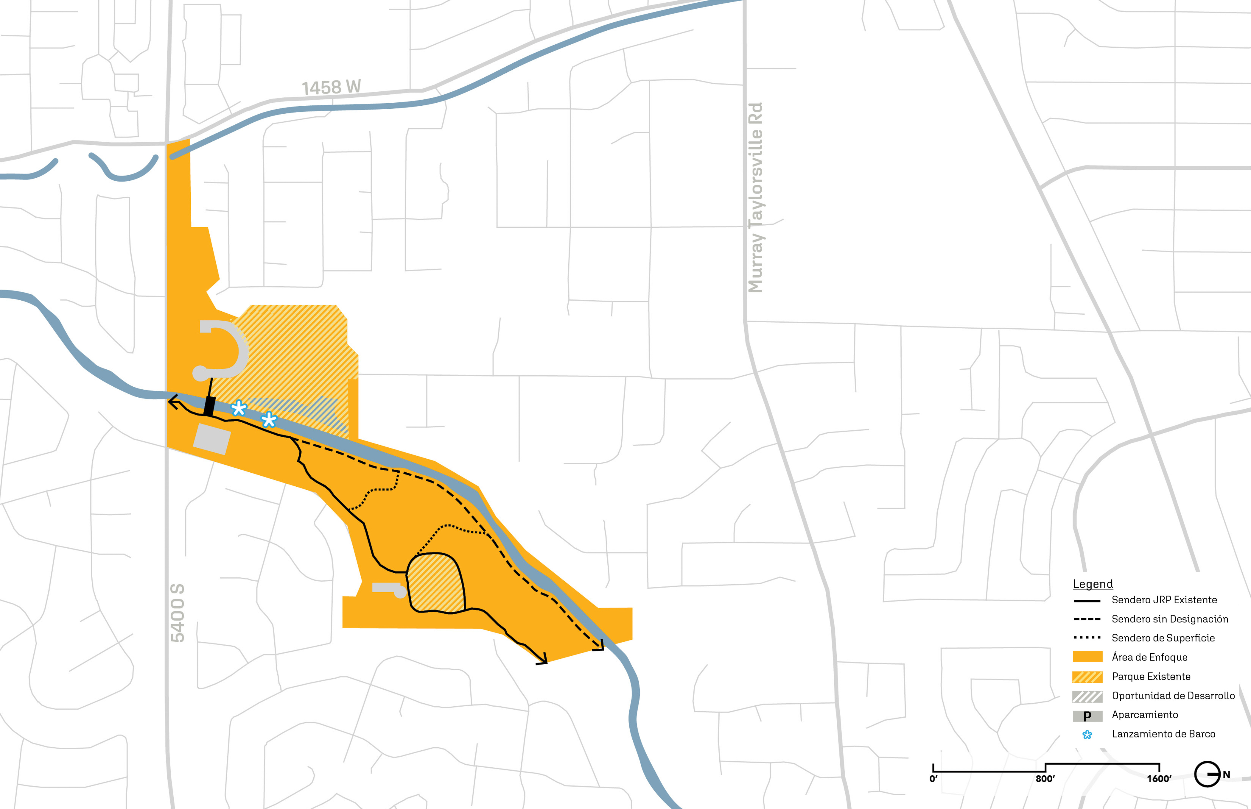 Dentro de estas mejoras ecológicas, existen oportunidades para equilibrar la protección de los humedales con el acceso a los mismos mediante pasarelas elevadas y mejoras en los senderos. Con el desarrollo de un sistema de dos senderos a ambos lados del río, el JRP Trail existente se verá mejorado, y las nuevas oportunidades de conexión vecinal con estos sistemas de senderos nuevos y existentes comenzarán a crear un sólido circuito recreativo alrededor de un ecosistema fluvial mejorado y resiliente.