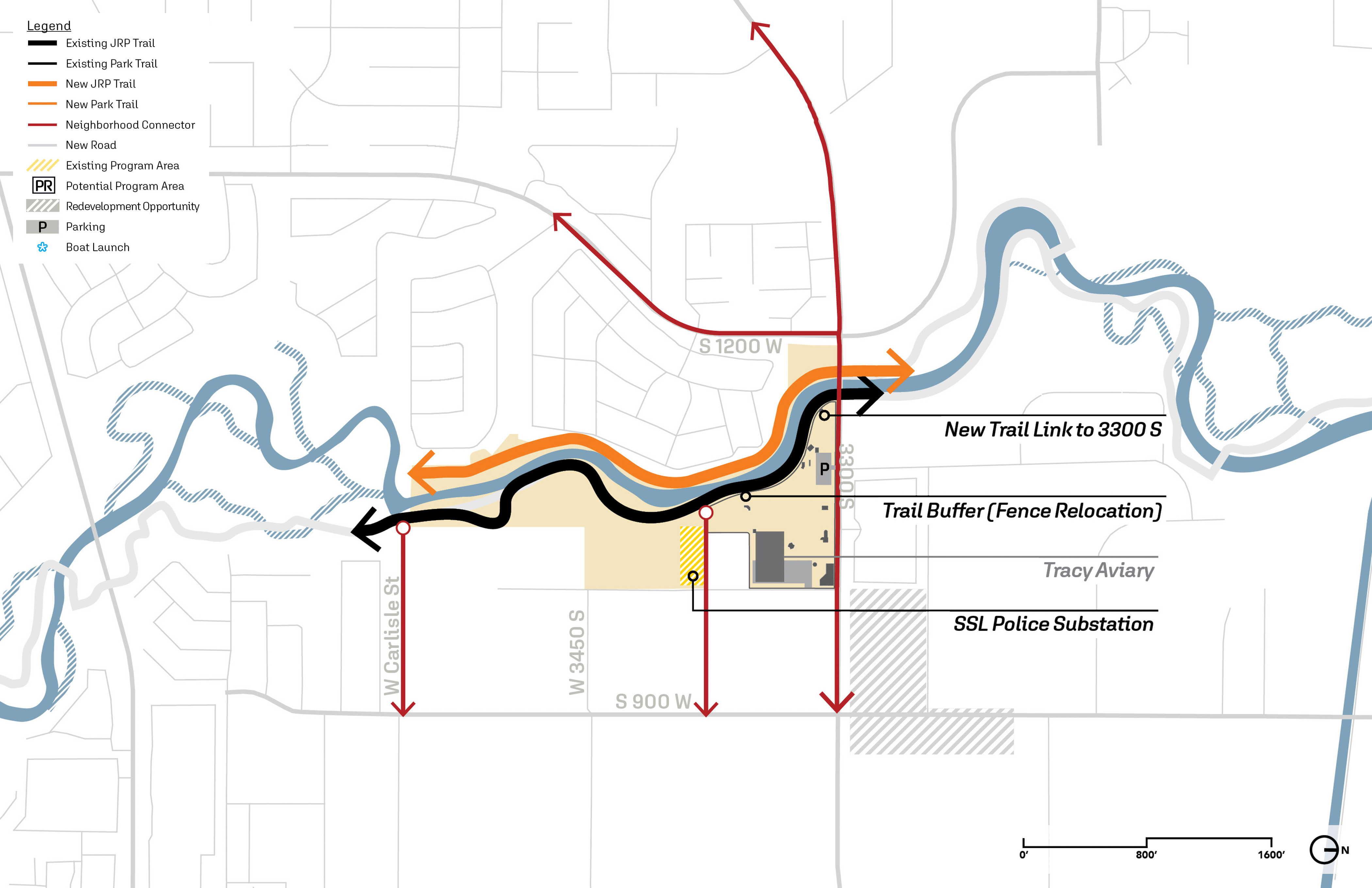 An Additional key component of this segment is the ongoing planning and development of the SSL Police Substation. Creating a stronger sense of access points for enhanced site safety increases site attraction for both the Nature Center and JRRA users to visit and explore the river.